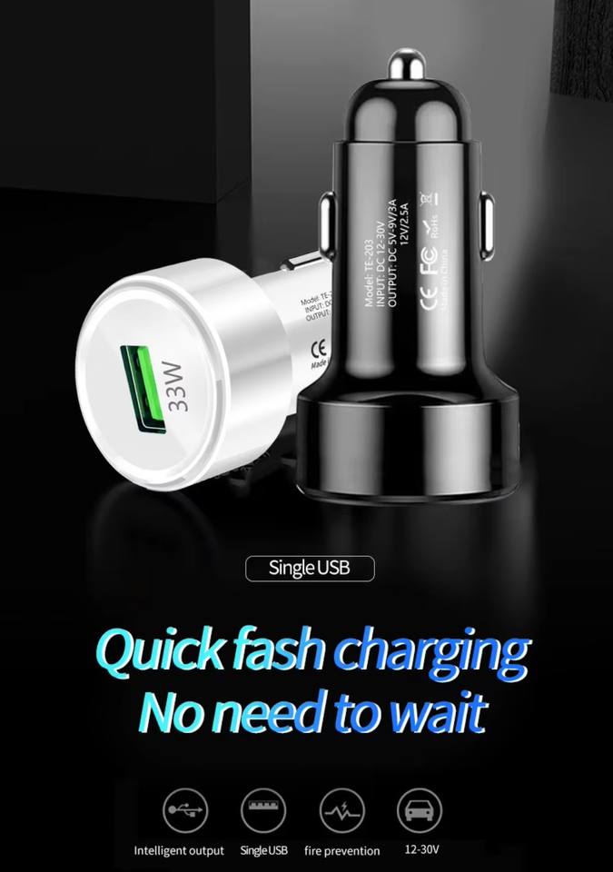 ที่ชาร์จ QC3.0 33W Pro ในรถยนต์, ที่ชาร์จแบบไดนามิกแรงดันไฟฟ้าแบบพับได้สำหรับ Galaxy S6พอร์ตเดียวหูฟังแบบพับได้กล้อง