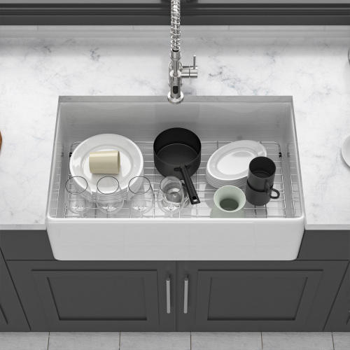 อ่างล้างจานแบบเดี่ยวสำหรับห้องครัวโรงนาสีขาวขนาด33X18X10นิ้วเตาพอร์ซเลนสำหรับเกษตรกรโรงนา