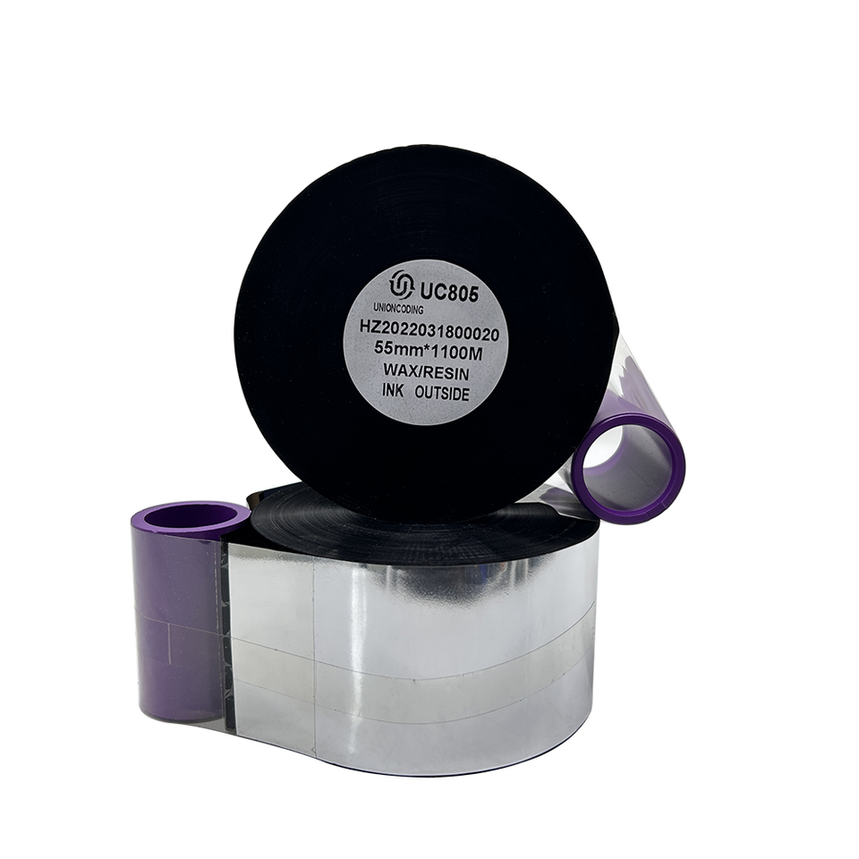 ริบบิ้นขี้ผึ้งเรซินความเร็วสูง33มม. 33x450มม. แบนพิมพ์ทับด้วยความร้อนสำหรับเครื่องพิมพ์โรงงานอาหารที่ใช้สำหรับการพิมพ์