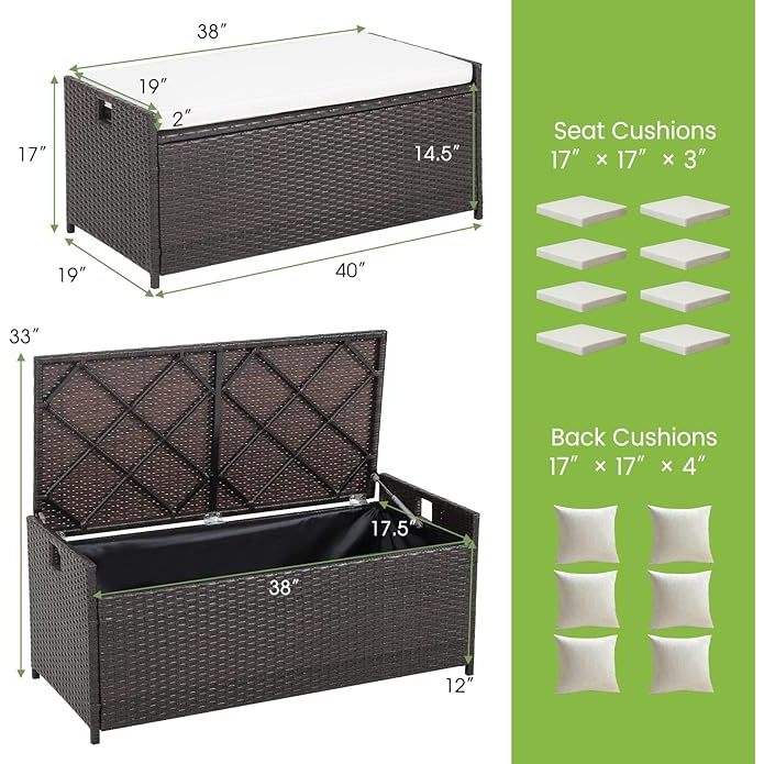 Dreamcraft กล่องหวายสำหรับกลางแจ้ง, ขนาด34แกลลอนพร้อมที่จับที่รองเบาะนั่งม้านั่งเก็บเครื่องมือในสวน