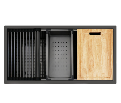 RS-3419C-B อ่างล้างหน้าคู่ขนาด34นิ้วเคลือบสีดำนาโนโดยไม่มีก๊อกน้ำดีไซน์ทันสมัยสำหรับติดตั้งเคาน์เตอร์2รู