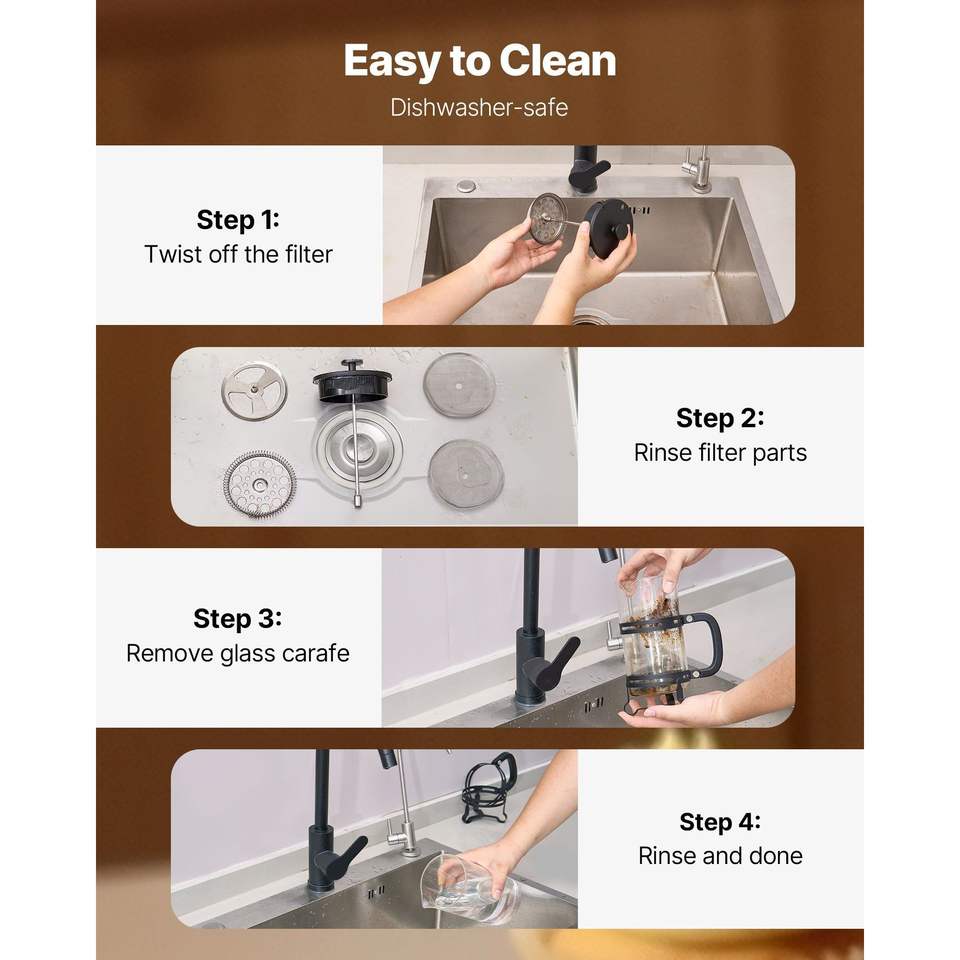 34 Ounce 1 Liter Borosilicate Glass French Press Coffee Maker Stainless Steel Filter Large Glass Tea Maker for Home Camping