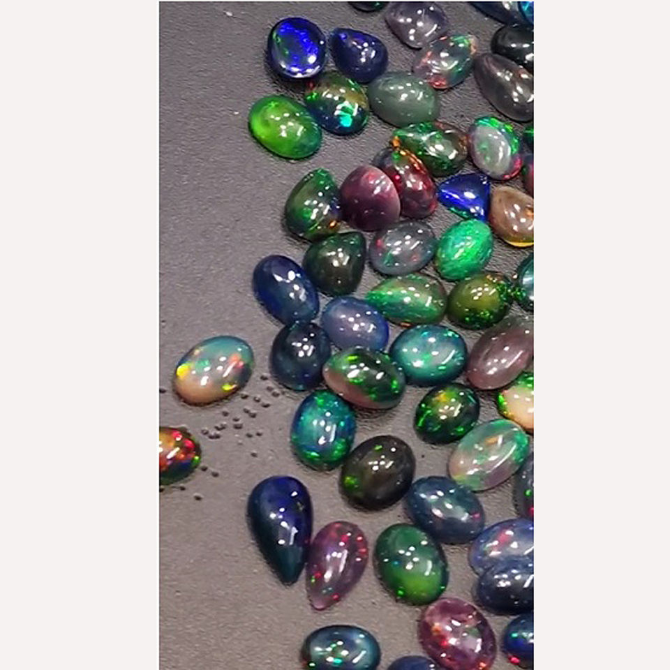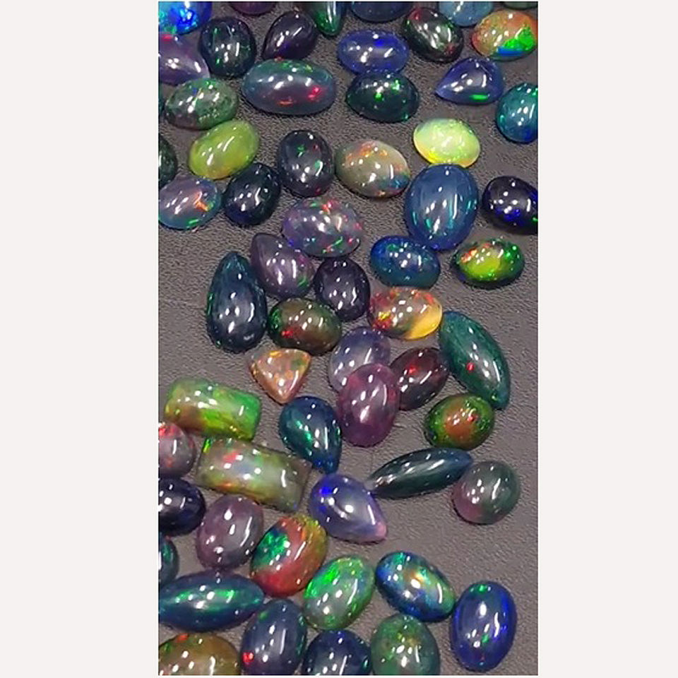 โอปอลดำเอธิโอเปียธรรมชาติ ขนาด 8 มม. ถึง 16 มม. ทรงไข่ ทรงลูกแพร์ ทรงแปดเหลี่ยม แบบคาโบชอง