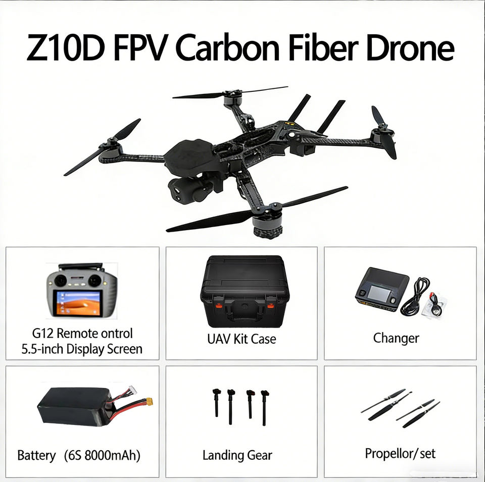 โดรน FPV จากโรงงานโดยตรง สำหรับการบินแข่งขันทางอากาศหลากหลายรูปแบบ โดรน Z10D FPV ที่มีความเสถียรสูง สำหรับการติดตามด้วย AI ระยะ 20 กม. รองรับน้ำหนักบรรทุก 3 กก.