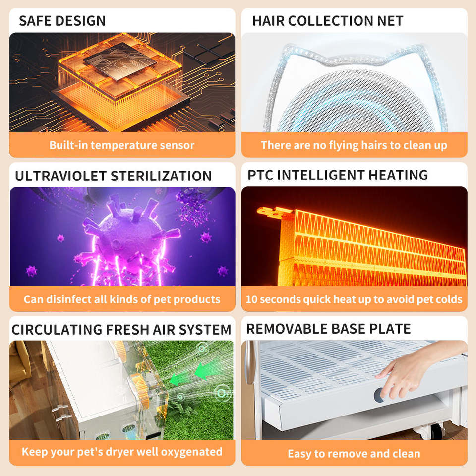 ตู้อบขนสัตว์เลี้ยงขนาด 350 ลิตร ผลิตจากสแตนเลสสตีล ป้องกันแบคทีเรีย คุณภาพพรีเมียม ทันสมัย หรูหรา ทนทาน เป็นมิตรต่อสิ่งแวดล้อม สำหรับใช้ในบ้านหรือร้านเสริมสวยสัตว์เลี้ยง