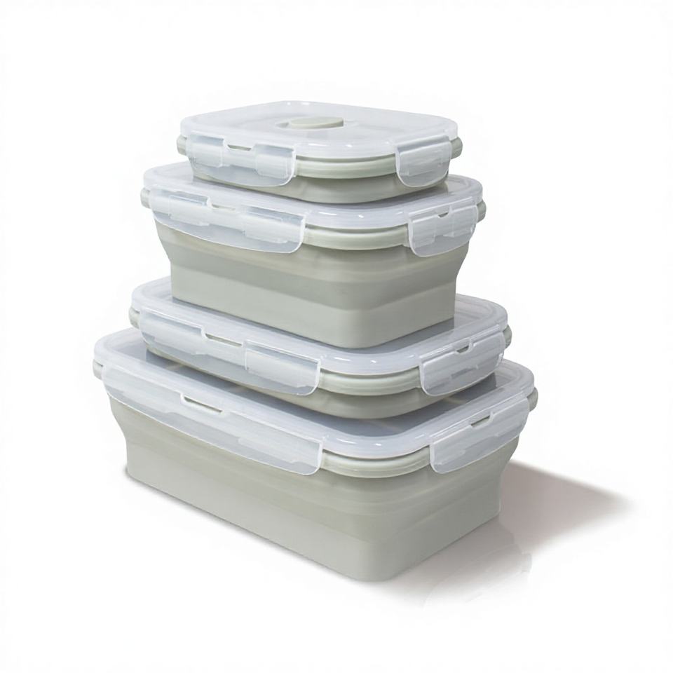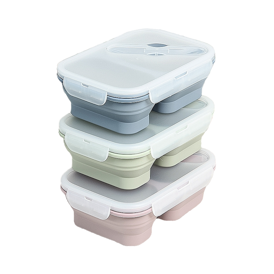 กล่องอาหารกลางวันซิลิโคนทรงสี่เหลี่ยมขนาด 350 มล. ใช้กับไมโครเวฟได้ พับเก็บได้ พร้อมคุณสมบัติรักษาความสดและดีไซน์พกพาสะดวกสำหรับการเก็บอาหาร
