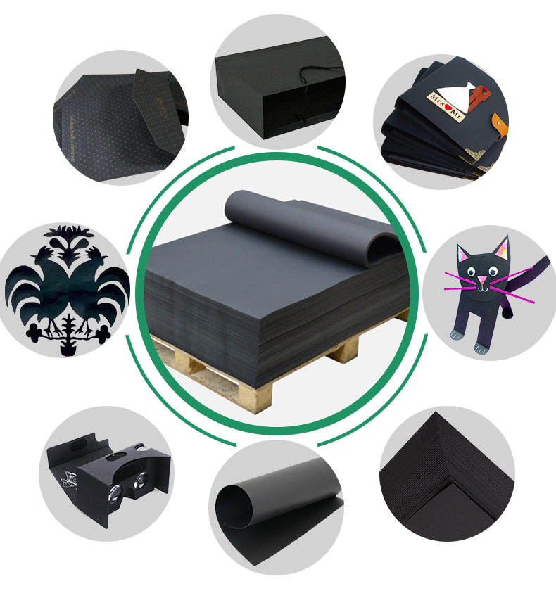 กระดาษแข็งสีดำหนา 3 มม. รุ่น XLW1303 น้ำหนัก 350 กรัม ยี่ห้อ XiaoLong Packaging แบบม้วน ผลิตจากวัสดุรีไซเคิล สำหรับงานเคมี