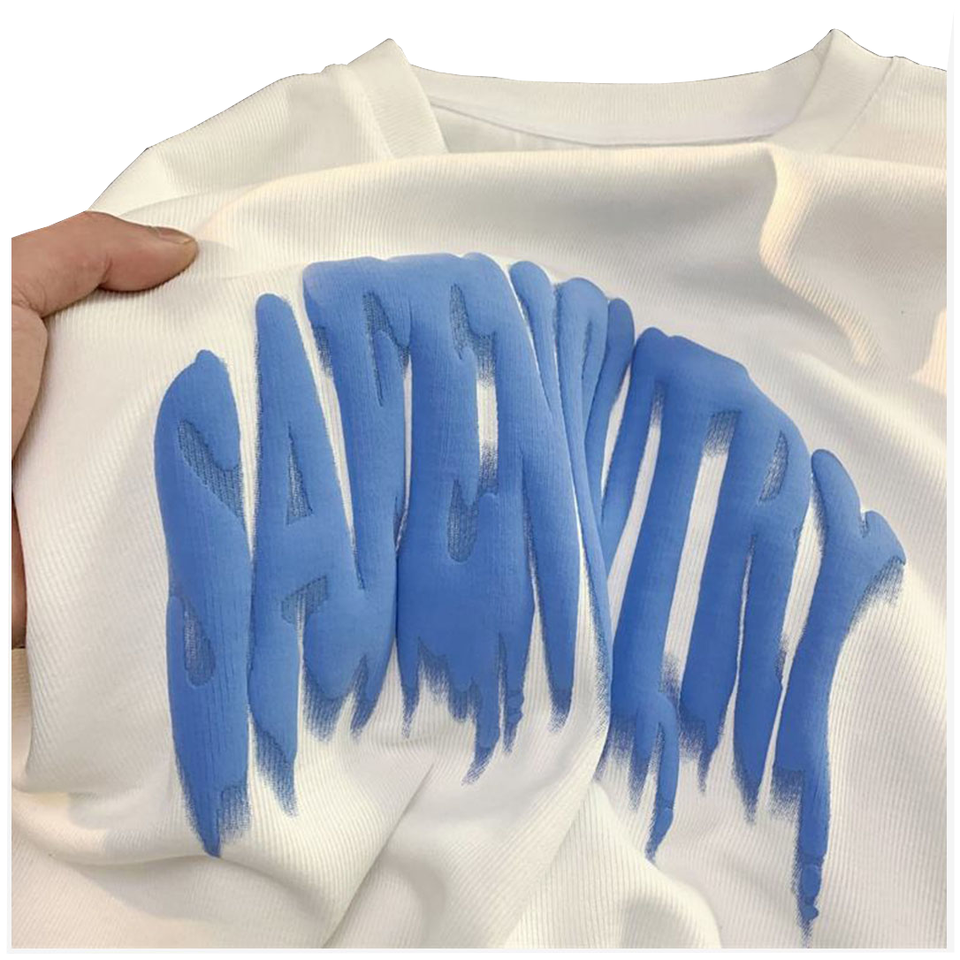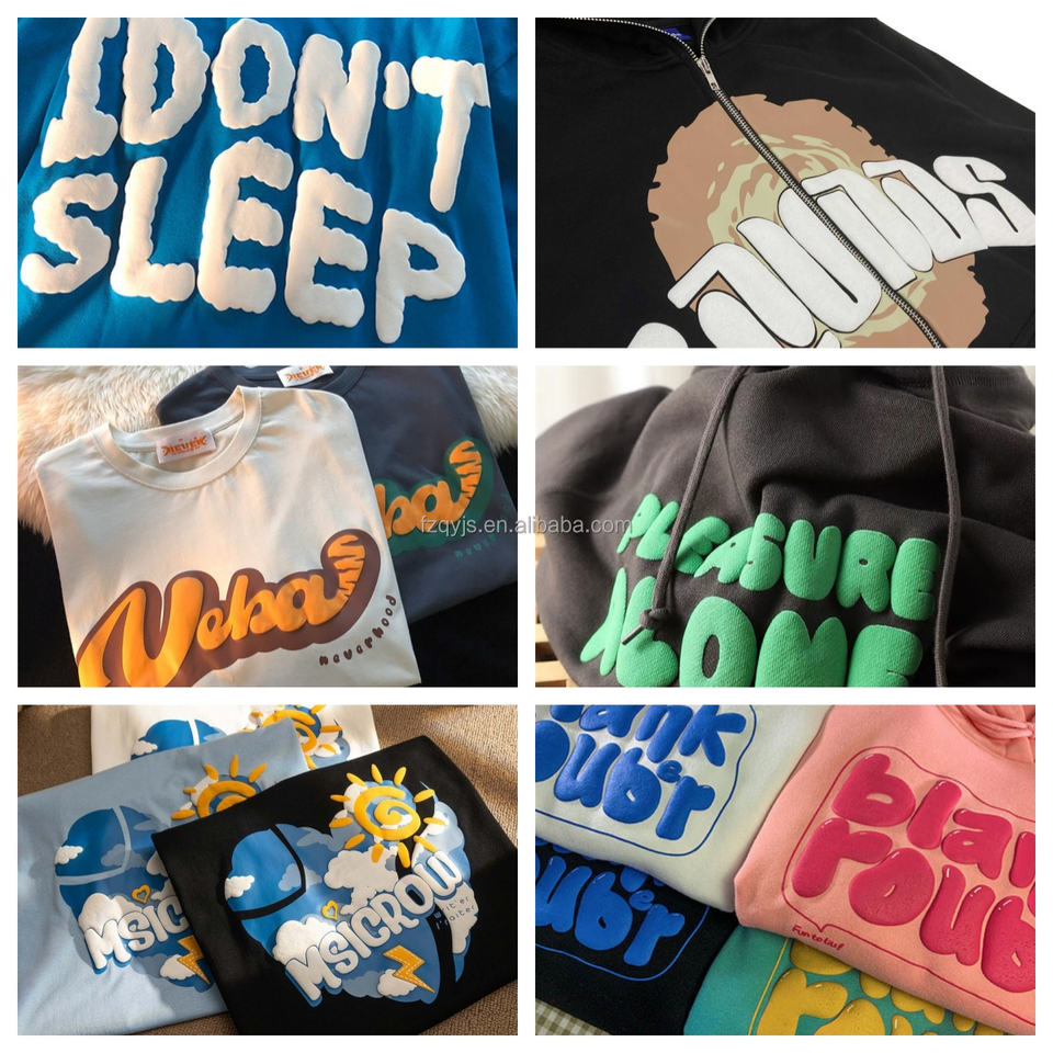 เสื้อยืดแขนสั้นผู้ชายผ้าคอตตอน/โพลีเอสเตอร์ 350gsm คุณภาพสูง แห้งเร็ว ระบายอากาศดี พิมพ์ลายกราฟิกโฟม 3 มิติ พร้อมโลโก้สั่งทำ สไตล์ไฮสตรีท