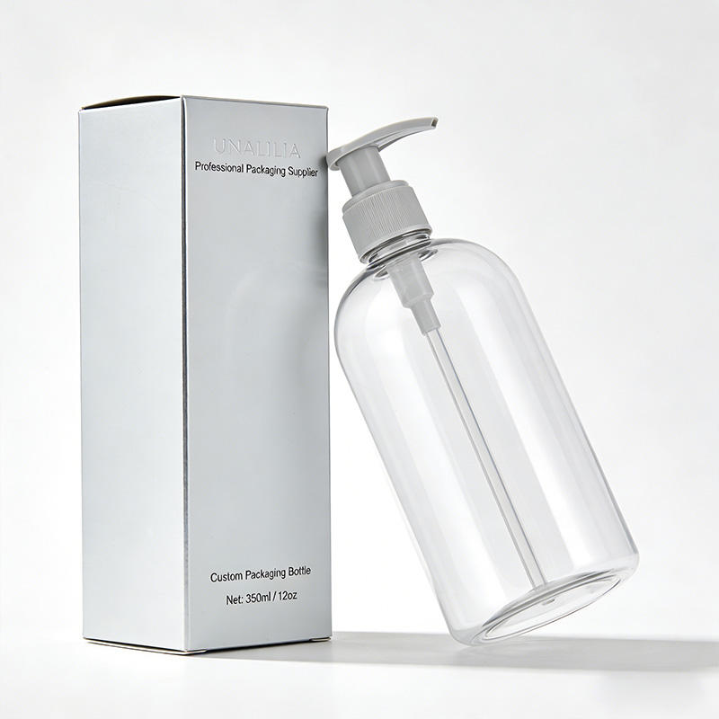 ขวดพลาสติก PET ใสทรงบอสตัน ขนาด 350 มล. 12 ออนซ์ พร้อมหัวปั๊มโลชั่น สำหรับบรรจุภัณฑ์แชมพู ครีมนวดผม ครีมอาบน้ำ ขายส่ง