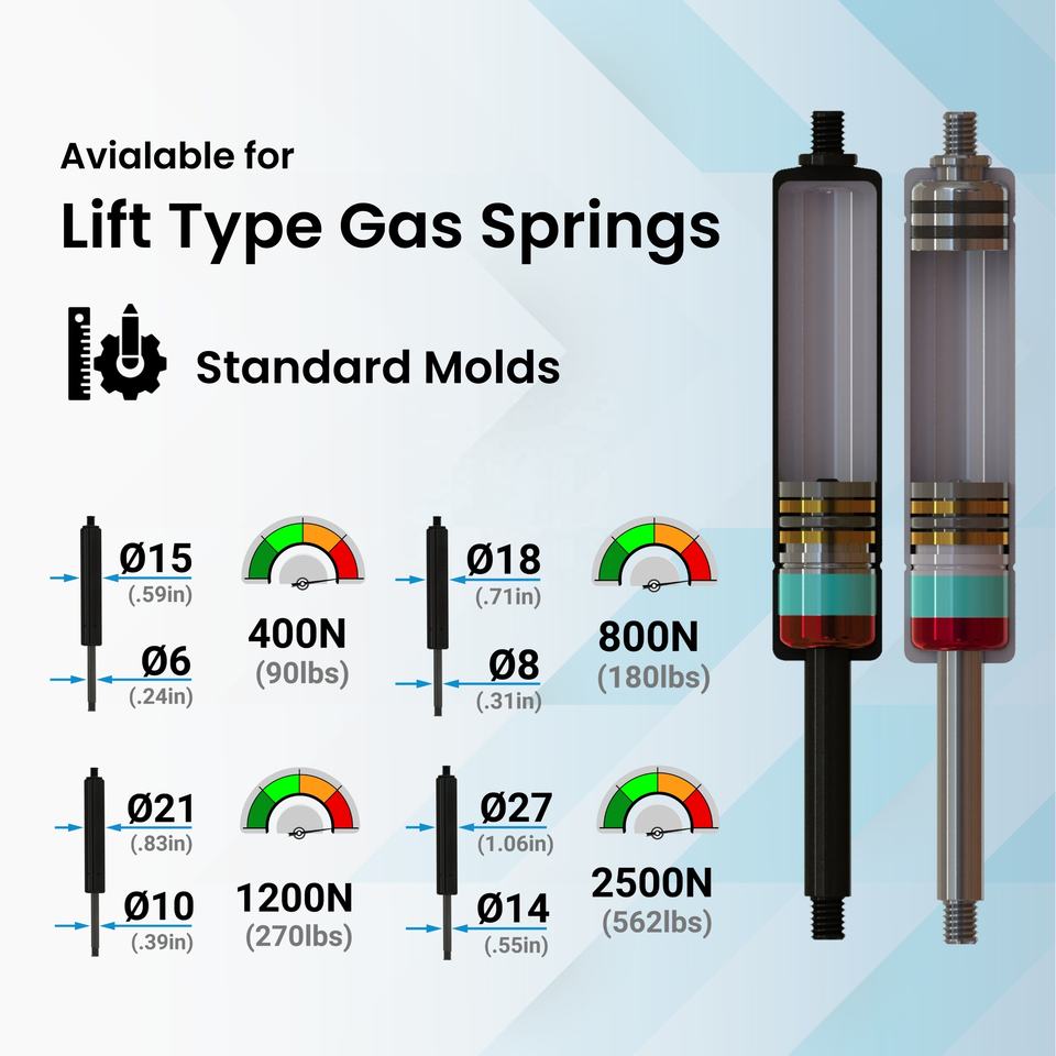 โช้คอัพแก๊สอุตสาหกรรมอเนกประสงค์ ผลิตในตุรกี พร้อมส่ง ขนาด 350 มม. - 13.78 นิ้ว ระยะชัก 765 มม. แรงดัน 2500 นิวตัน