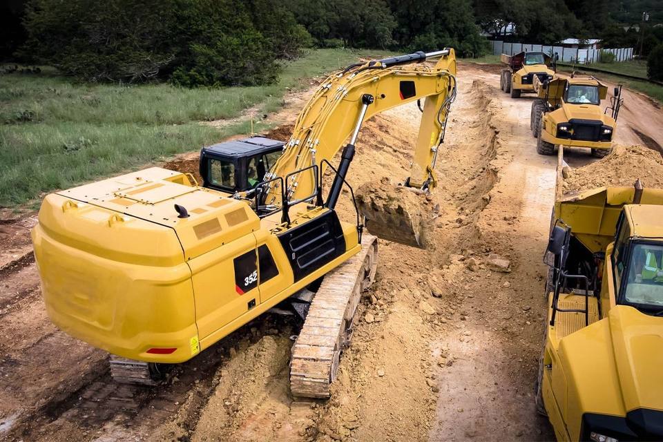 รถขุดไฮดรอลิกสำหรับงานหนัก 352 48.5 ตัน สำหรับงานก่อสร้างและเหมืองแร่ เครื่องยนต์ 330 กิโลวัตต์ ความจุถัง 3.3 ลูกบาศก์เมตร บูม 6.9 เมตร