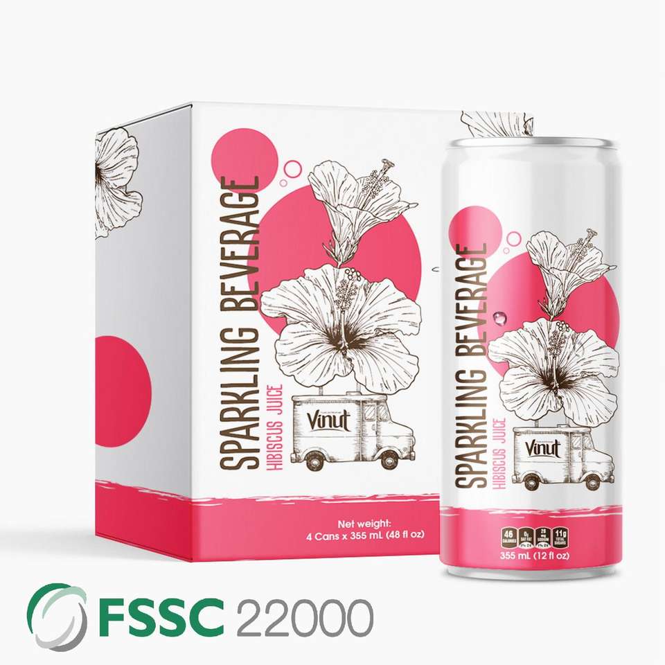 Hibiscus Sparkling OEM ผู้ผลิตเครื่องดื่มสั่งทำได้355มล. Alu CAN 24กระป๋องต่อกล่อง
