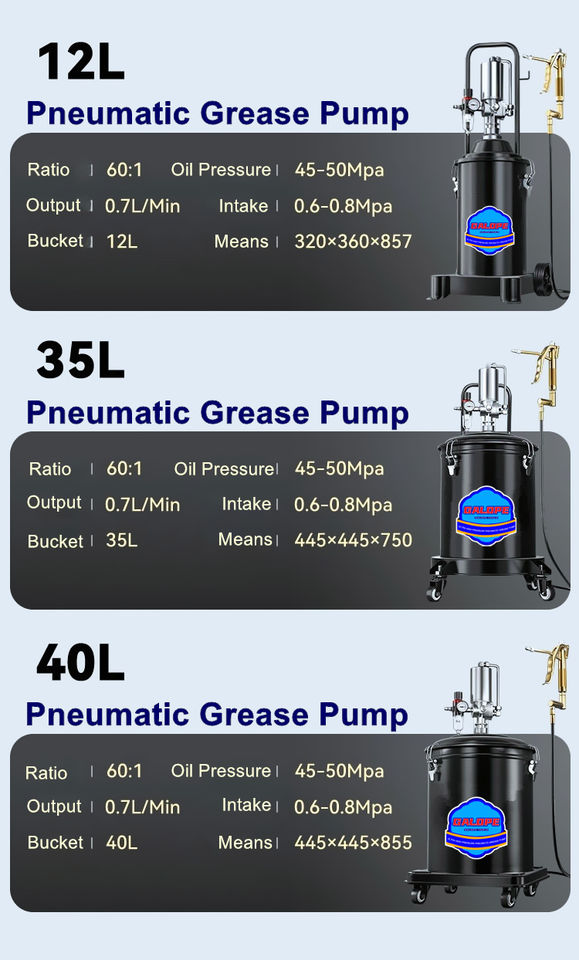 เครื่องจ่ายน้ำมันอัดลมแบบถัง 35 ลิตร ปั๊มจ่ายจาระบีแบบใช้ลม 9 แกลลอน ปั๊มจาระบีแรงดันสูงแบบนิวเมติก พร้อมปืนจ่ายจาระบี สายยาว 4 เมตร