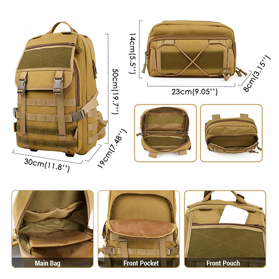 กระเป๋าเป้เดินป่าแบบยุทธวิธี 35 ลิตร สำหรับผู้ชาย ระบบโมลล์ กระเป๋าสำรอง 3 วัน กระเป๋าเป้สะพายหลังสำหรับตั้งแคมป์ ตกปลา กิจกรรมกลางแจ้ง