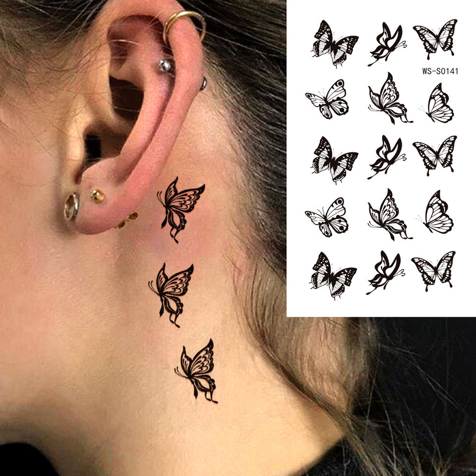 35แผ่นสีดำผีเสื้อสักชั่วคราวกันน้ำดอกไม้ขนนกดาวดวงจันทร์สติกเกอร์รอยสักปลอมสำหรับมือแขนคอศิลปะร่างกาย