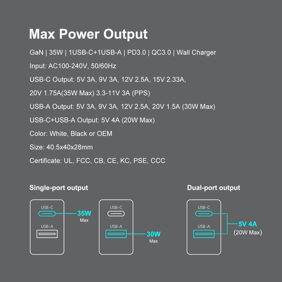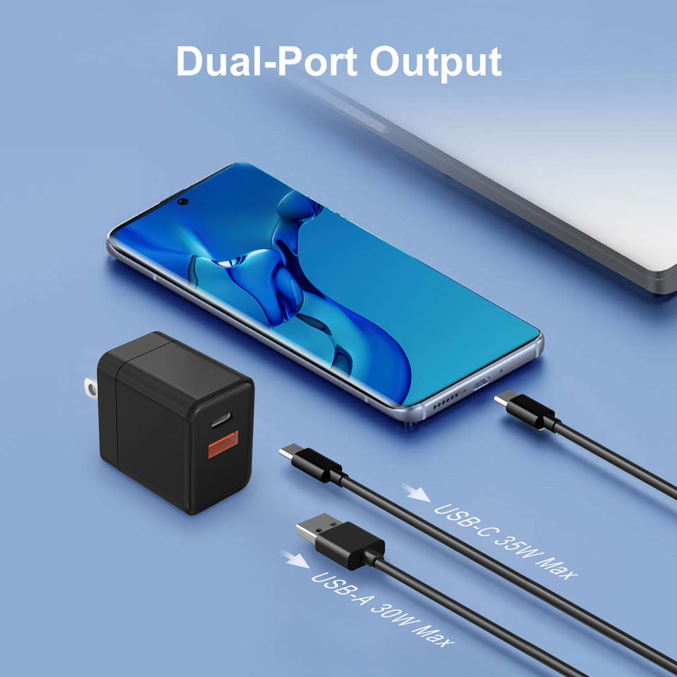 GaN โทรศัพท์มือถือสองพอร์ตชาร์จเร็ว,Usb Type C Pd Usbc Eu Us Uk ปลั๊กเสียบผนัง35W สองพอร์ต