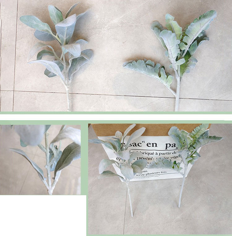 35cm Artificial Senecio Cineraria Flocking Fake Silk Leaves Plant for Christmas Halloween Graduation Easter Decoration