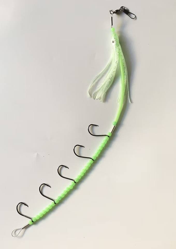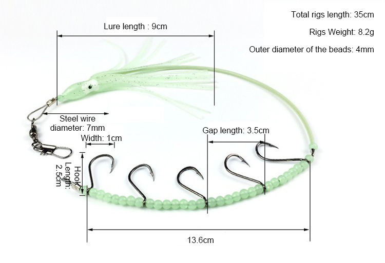 เหยื่อตกปลาปลอมรูปปลาหมึกเรืองแสงขนาด 35 ซม. และปลากระดี่ พร้อมสายเบ็ดเหล็กแหลม 5 เส้น สำหรับตกปลาแซนเดอร์