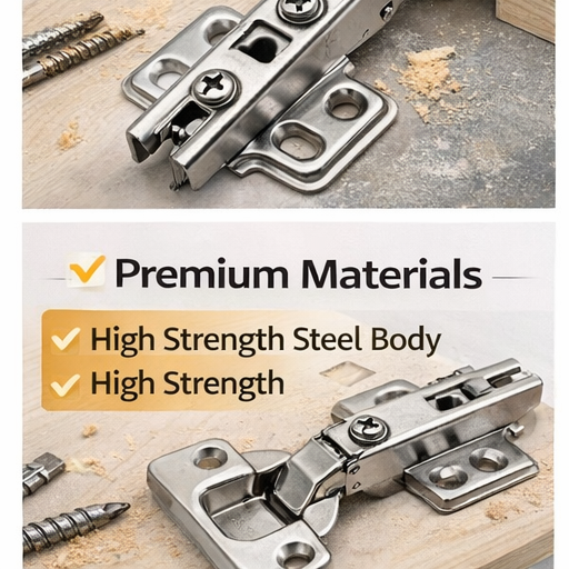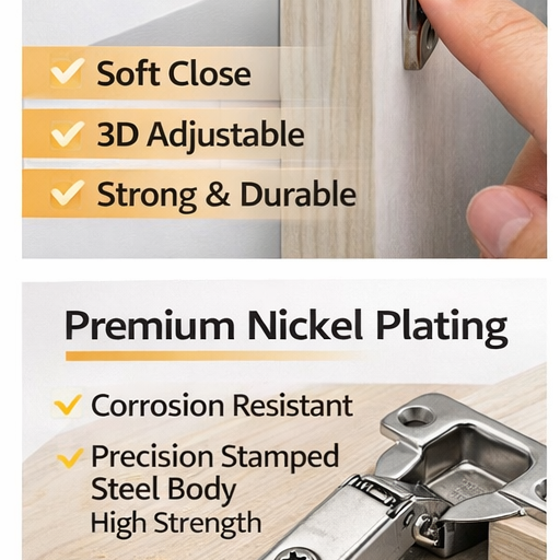 บานพับประตูครัวแบบซ่อนขนาด 35 มม. ปรับได้ 3 มิติ พร้อมแผ่นฐาน, เหล็กปั๊มขึ้นรูปอย่างแม่นยำ, เปิดได้อย่างราบรื่น