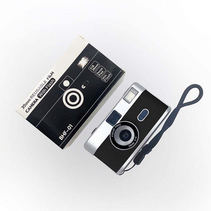 กล้องฟิล์ม 35 มม. ใช้ซ้ำได้พร้อมฟิล์ม ใช้ได้กับฟิล์มสีเนกาทีฟ 35 มม. หรือฟิล์มขาวดำ กล้องแบบไม่ใช้แล้วทิ้งพร้อมแฟลช
