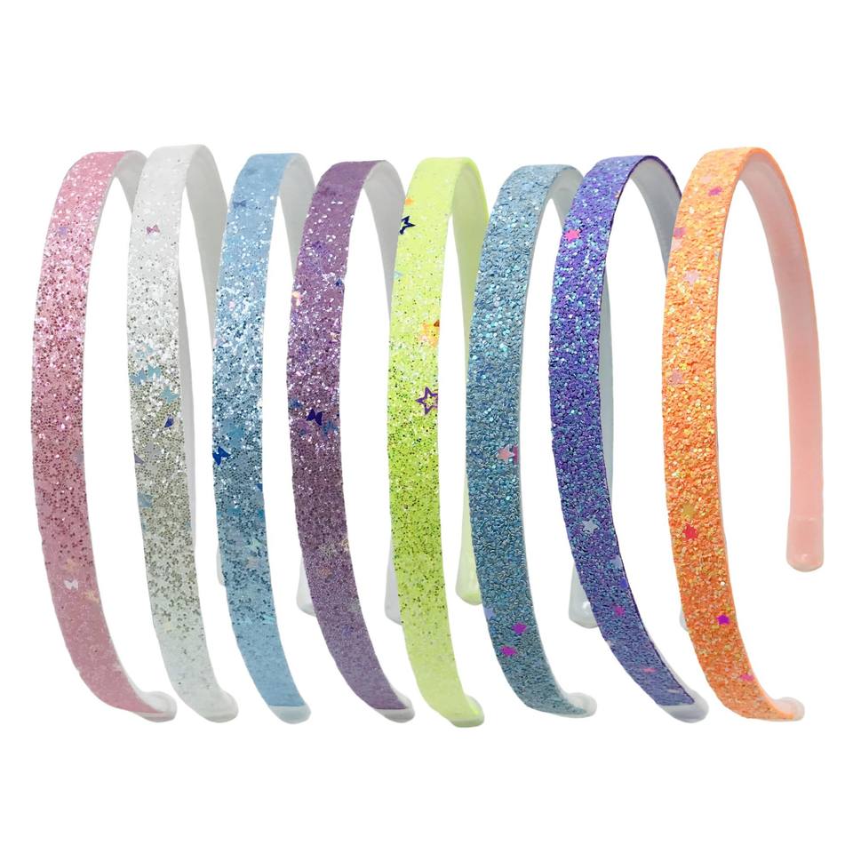 35pcs 1cm Star Glitter Fabric Covered Hairband with Teeth Nonslip Shiny Fabric Wrapped Headband Girls Headwear Hair Accessories
