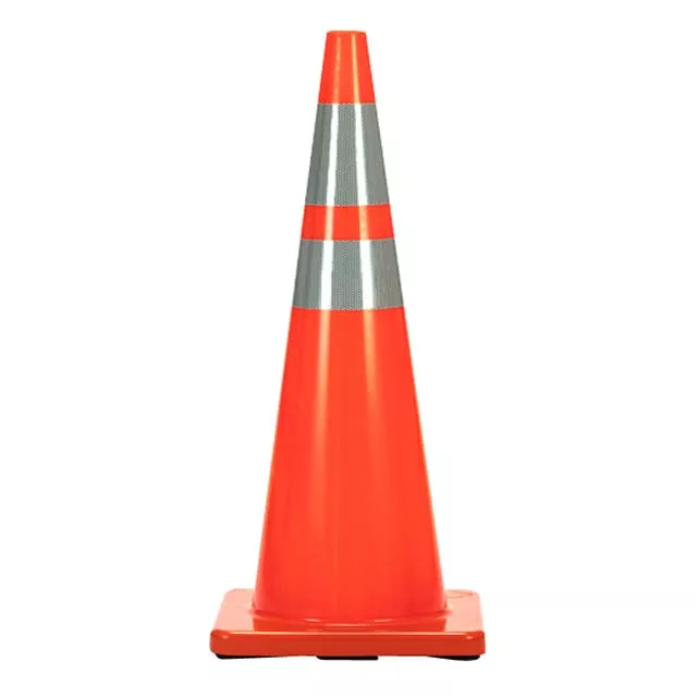 แท่งกรวยจราจร PVC สีส้มทึบขนาด36 "/900มม. พร้อมตัวสะท้อนแสงสีขาวสำหรับใช้บนถนน