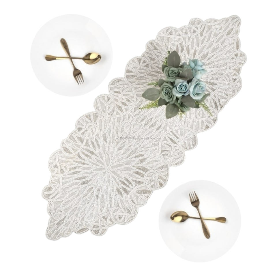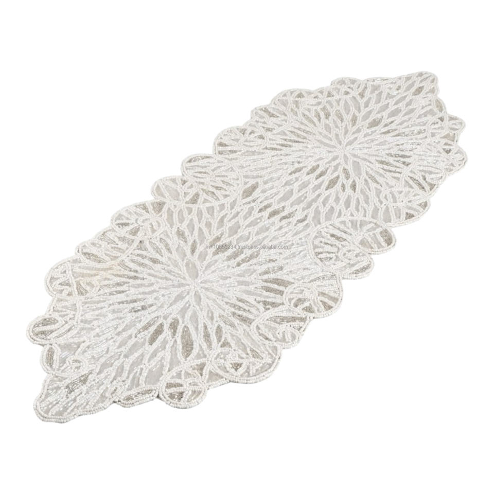 ผ้าปูโต๊ะอาหารประดับลูกปัดแก้วขนาด 36 นิ้ว งานประดับลูกปัดทำมือคุณภาพสูง พร้อมลายดอกไม้แบบกำหนดเอง ราคาประหยัด สำหรับคริสต์มาส