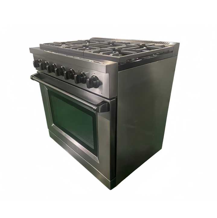 36 นิ้ว 5.5 คิวบิก เตาแก๊สแบบตั้งพื้น 6 หัวเตา พร้อมเตาอบแก๊สแบบ Convection เชื่อมต่อแบบไร้รอยต่อ ผลิตจากสแตนเลสเคลือบ PVD สีดำ