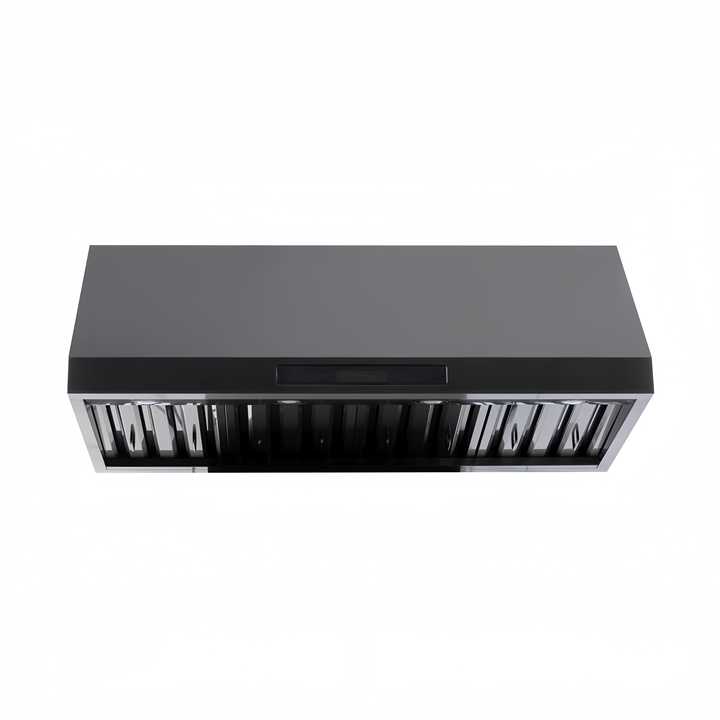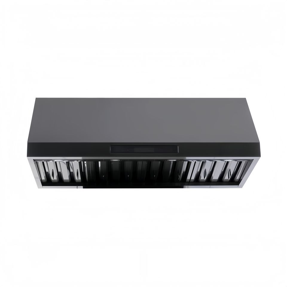 แผ่นกั้นควันไฟฟ้าขนาด 36 นิ้ว 1000 เมตร/ชั่วโมง สำหรับใช้ในครัวโรงแรม พร้อมรีโมทคอนโทรล ไฟ LED 2 ดวง ติดผนัง สีดำ สแตนเลส