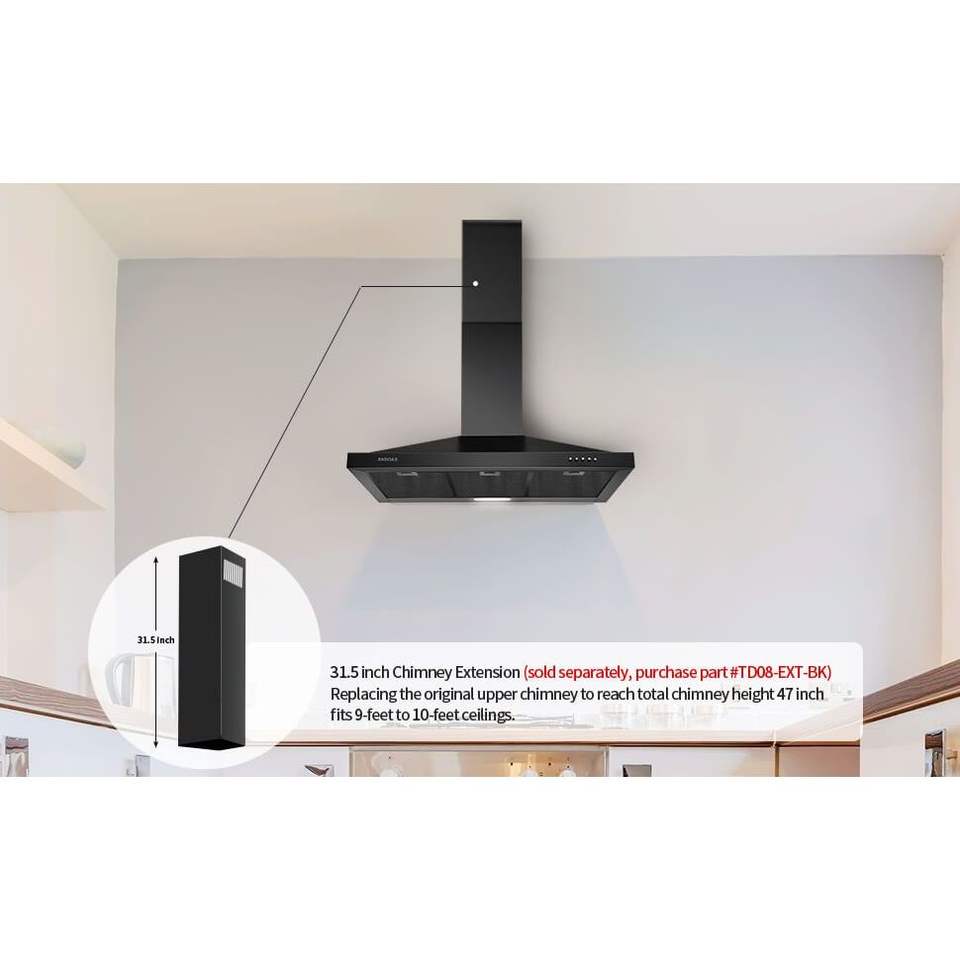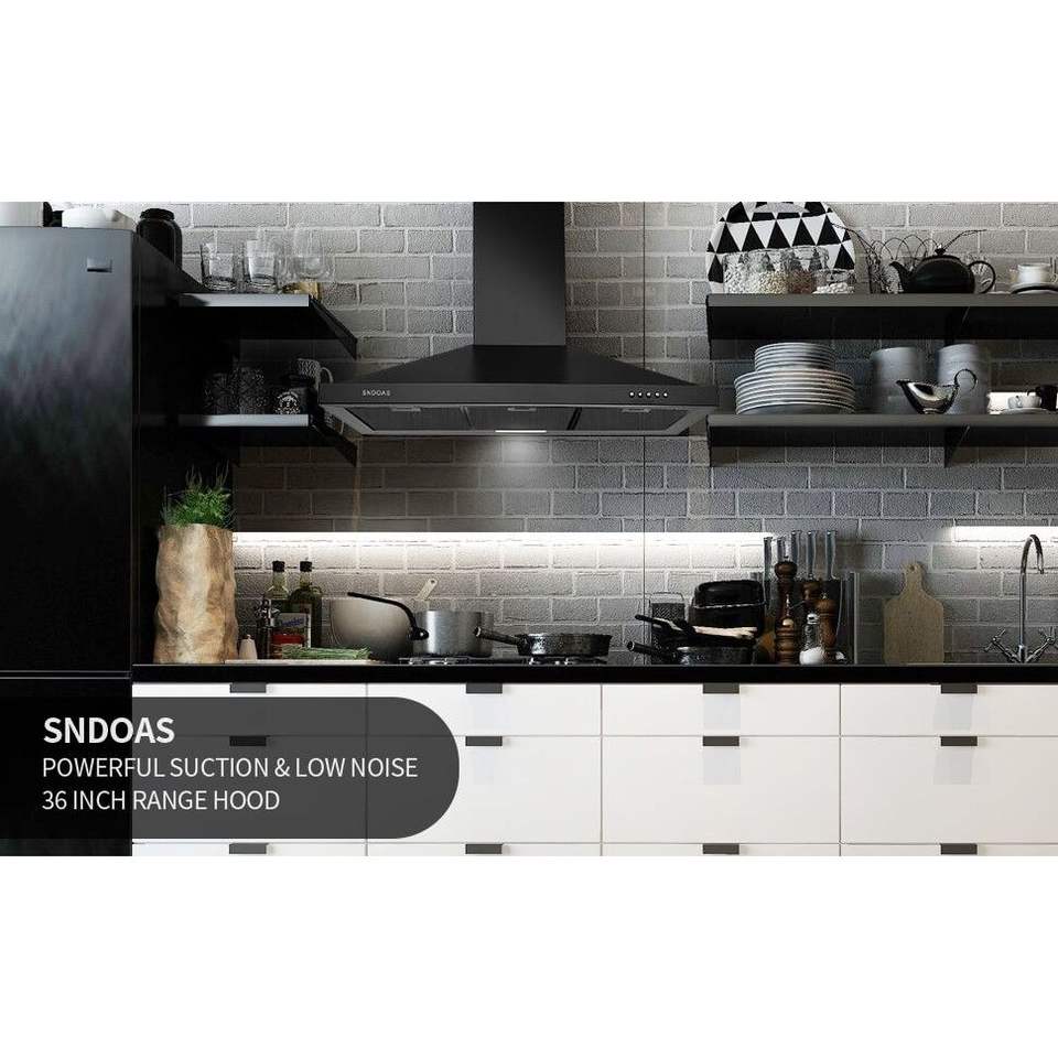 เครื่องดูดควันติดผนังสีดำขนาด 36 นิ้ว ทำจากสแตนเลสสีดำสำหรับห้องครัว