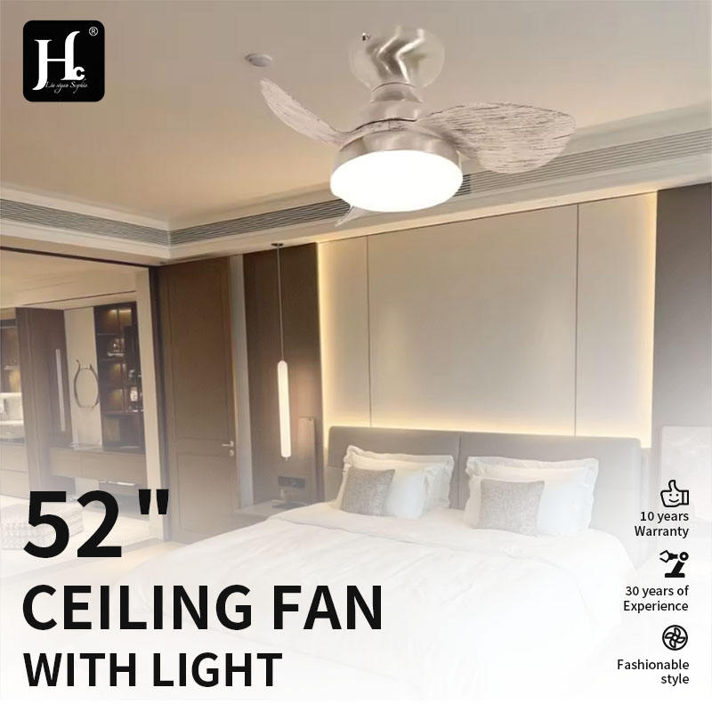 โคมไฟพัดลมเพดาน LED ขนาด 36 นิ้ว พร้อมรีโมทคอนโทรล ตัวโครงเหล็กไฟฟ้าขนาดเล็ก ใบพัดตกแต่งลายไม้ สำหรับตกแต่งห้องรับประทานอาหารและห้องนอน