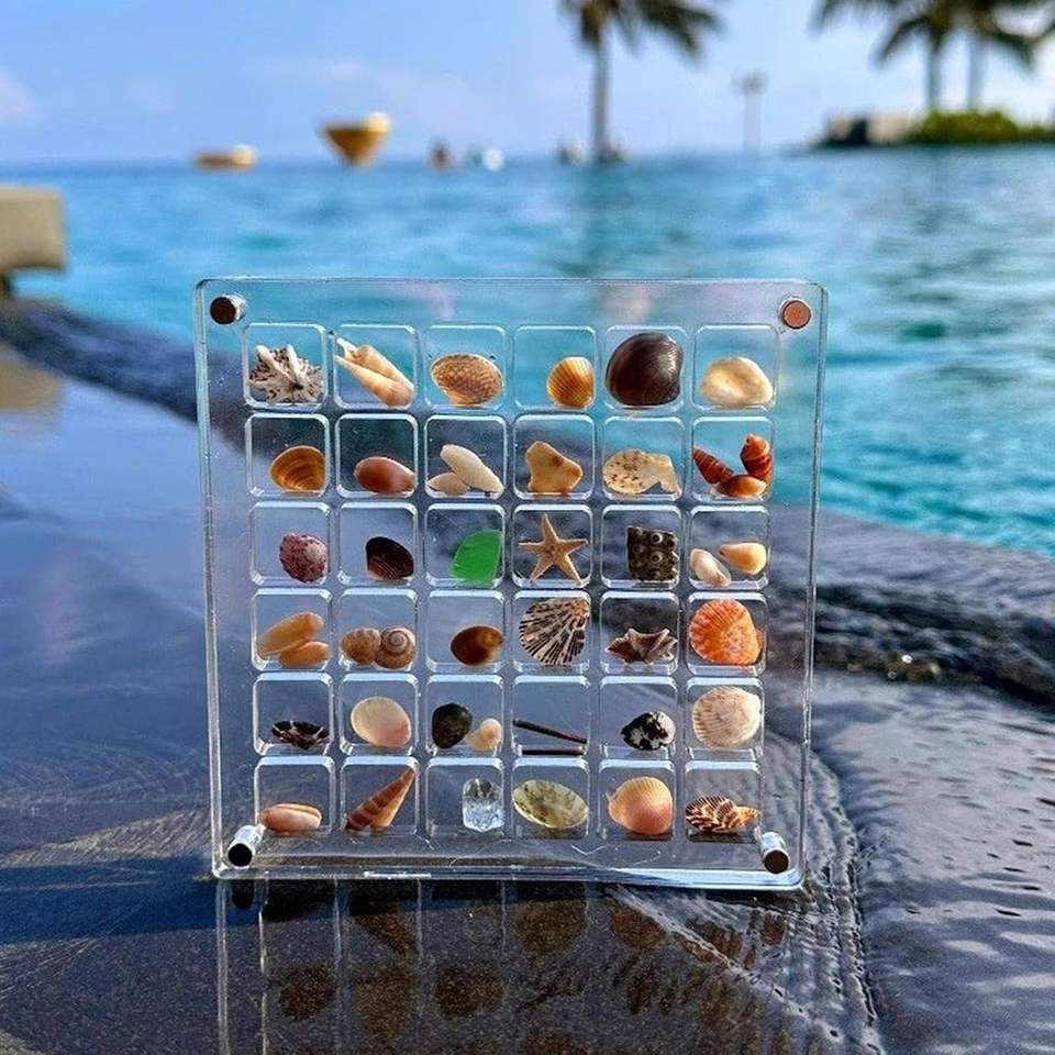กล่องเก็บของตัวอย่างเปลือกหอยเล็กลายตาราง36ช่องกล่องแสดงอะคริลิกงานหัตถกรรมแม่เหล็กขนาดเล็ก