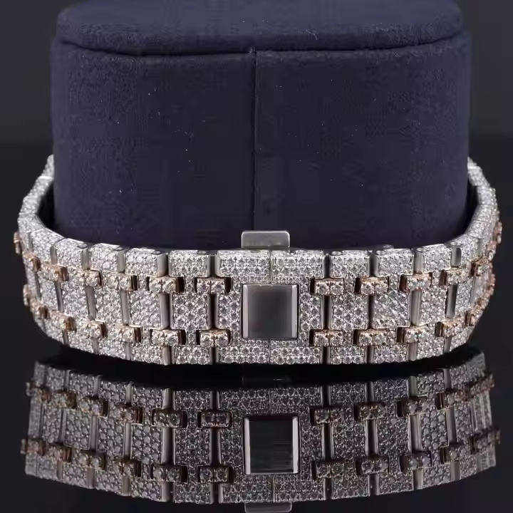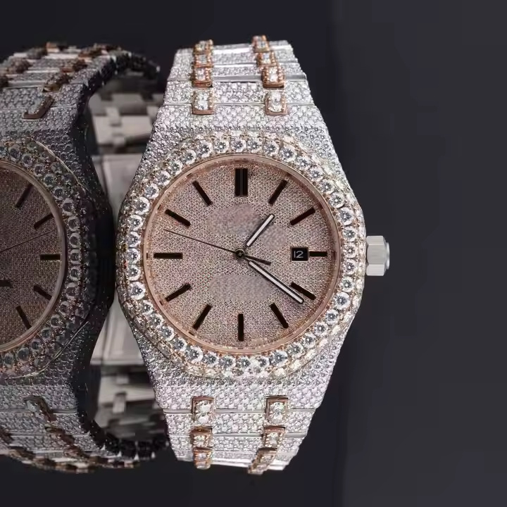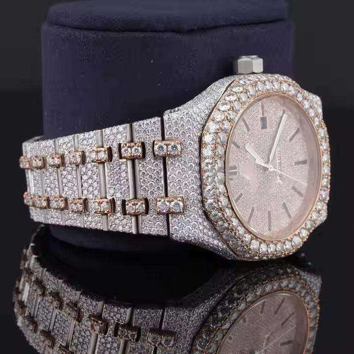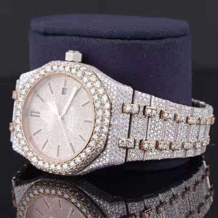 นาฬิกาสแตนเลสสำหรับผู้หญิง36มม. หรูหรา VVS Moissanite ประดับเพชรทำด้วยมือคุณภาพสูงช่วยลดการเคลื่อนไหวอัตโนมัติ