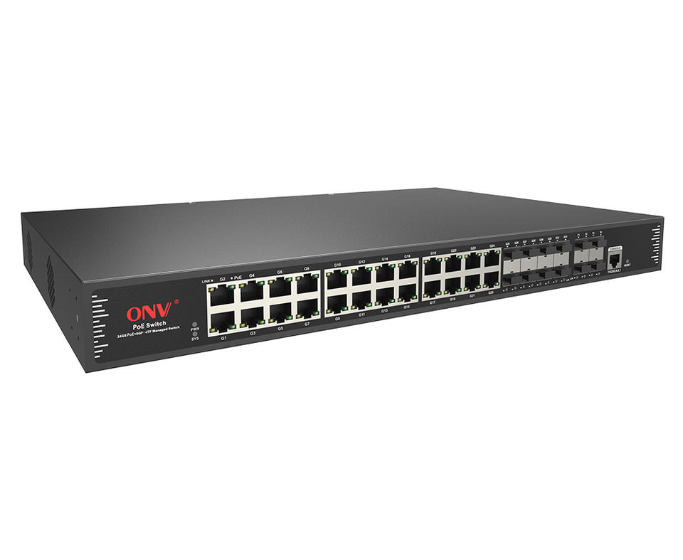 36-พอร์ต24PG + 8GF + 4TF(SFP +) สวิตช์ PoE ที่มีการจัดการ10G Layer 3 (ONV-POE38036PFM)