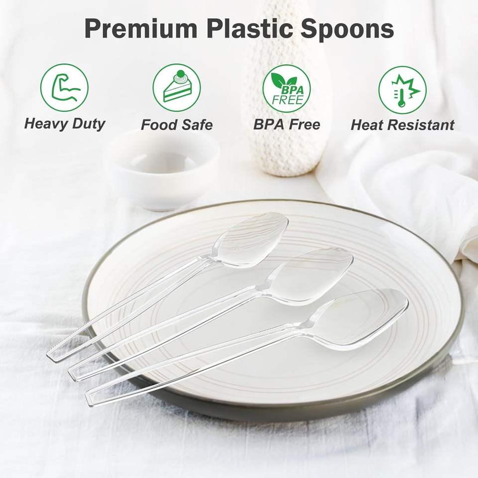 ช้อนพลาสติกใสแบบใช้แล้วทิ้ง ปราศจากสาร BPA จำนวน 360 ชิ้น ทนความร้อน แข็งแรง ทนทาน คุณภาพพรีเมียม สำหรับงานหนัก