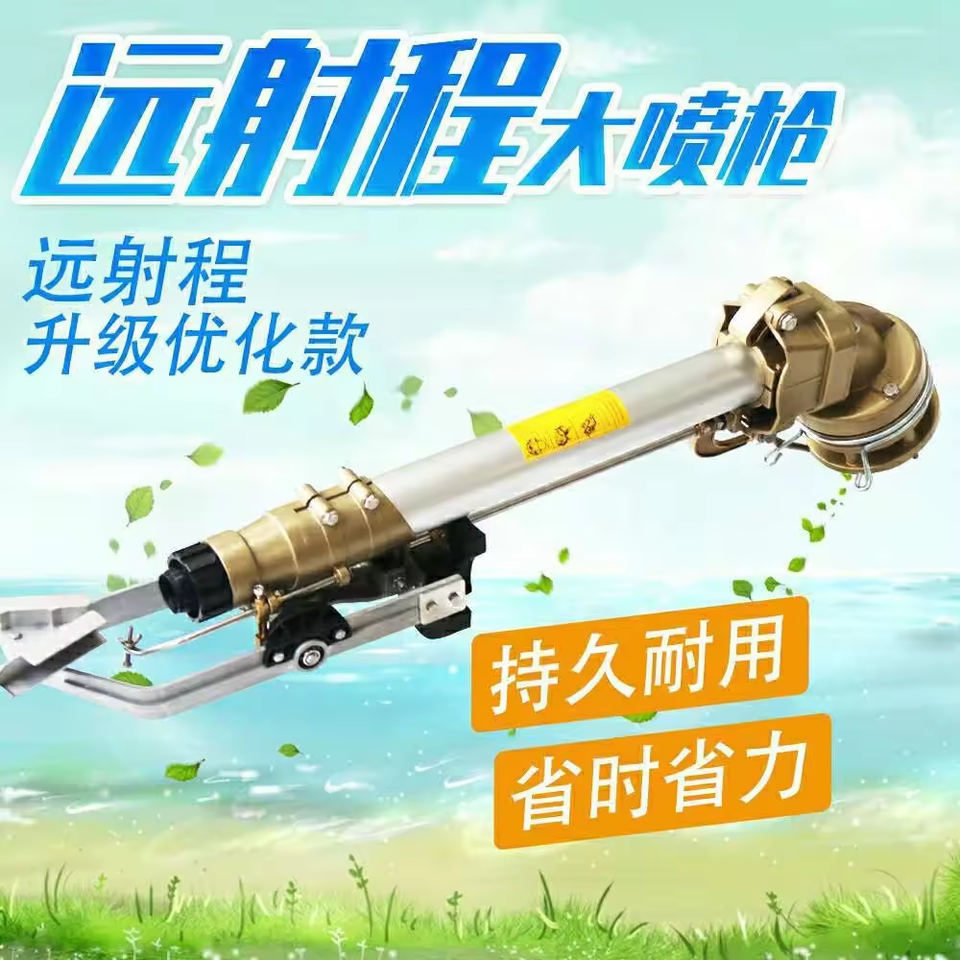 ปืนฉีดน้ำฝนขนาดใหญ่หมุนได้360องศาระบบชลประทานในฟาร์มทางไกลขนาด16มม. วัสดุโลหะที่มีฟังก์ชันการทำงานสูง