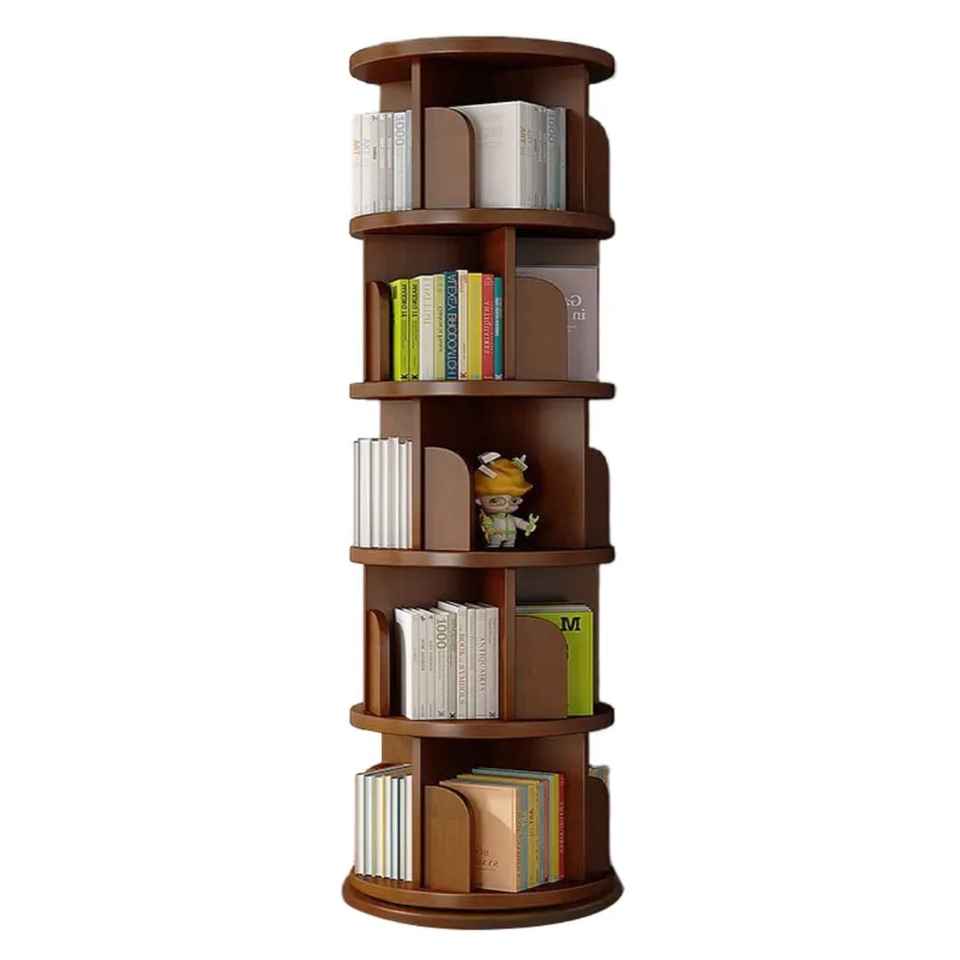 ชั้นวางหนังสือหมุนได้ 360 องศา 5 ชั้น ชั้นวางหนังสือทรงกลมแบบหมุนได้ วัสดุไม้ สำหรับจัดเก็บของในห้องนอนเด็ก ห้องนั่งเล่น ห้องสมุด