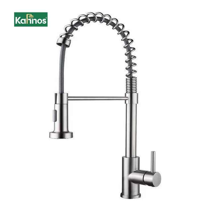 ก๊อกน้ำห้องครัวสแตนเลสสตีลทันสมัย 360 องศา แบบก้านโยกเดี่ยว ติดตั้งบนเคาน์เตอร์ พร้อมหัวฉีดแบบดึงลง