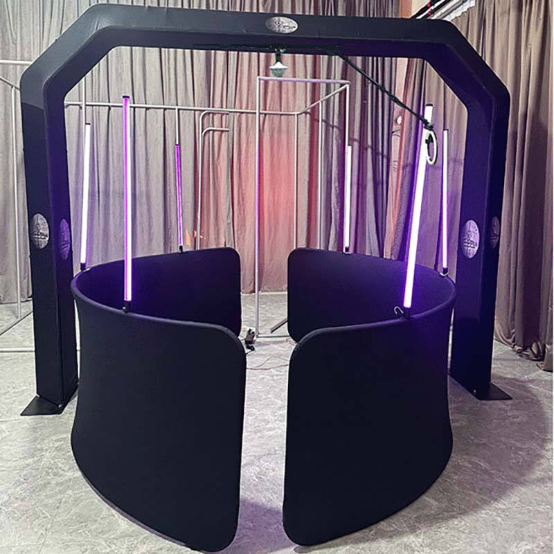 บูธถ่ายรูปเหนือศีรษะ360องศาพร้อมหน้าจอสีเขียวงานแต่งงานแบบพกพาสำหรับแบตเตอรี่ Vogue ไฟ LED ใช้ได้กับสมาร์ทโฟน