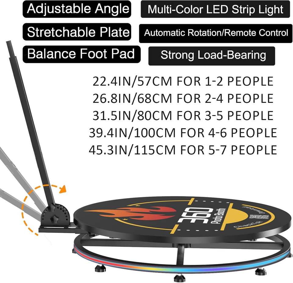 ตู้ถ่ายภาพ 360 องศา สำหรับงานปาร์ตี้ พร้อมกล่องใส่แบบแข็ง ไฟ RGB Strip ซอฟต์แวร์ แอปพลิเคชัน รีโมท กล้องหมุนอัตโนมัติ 360 องศา ขนาด 68 ซม. รับน้ำหนักได้ 200 กก.