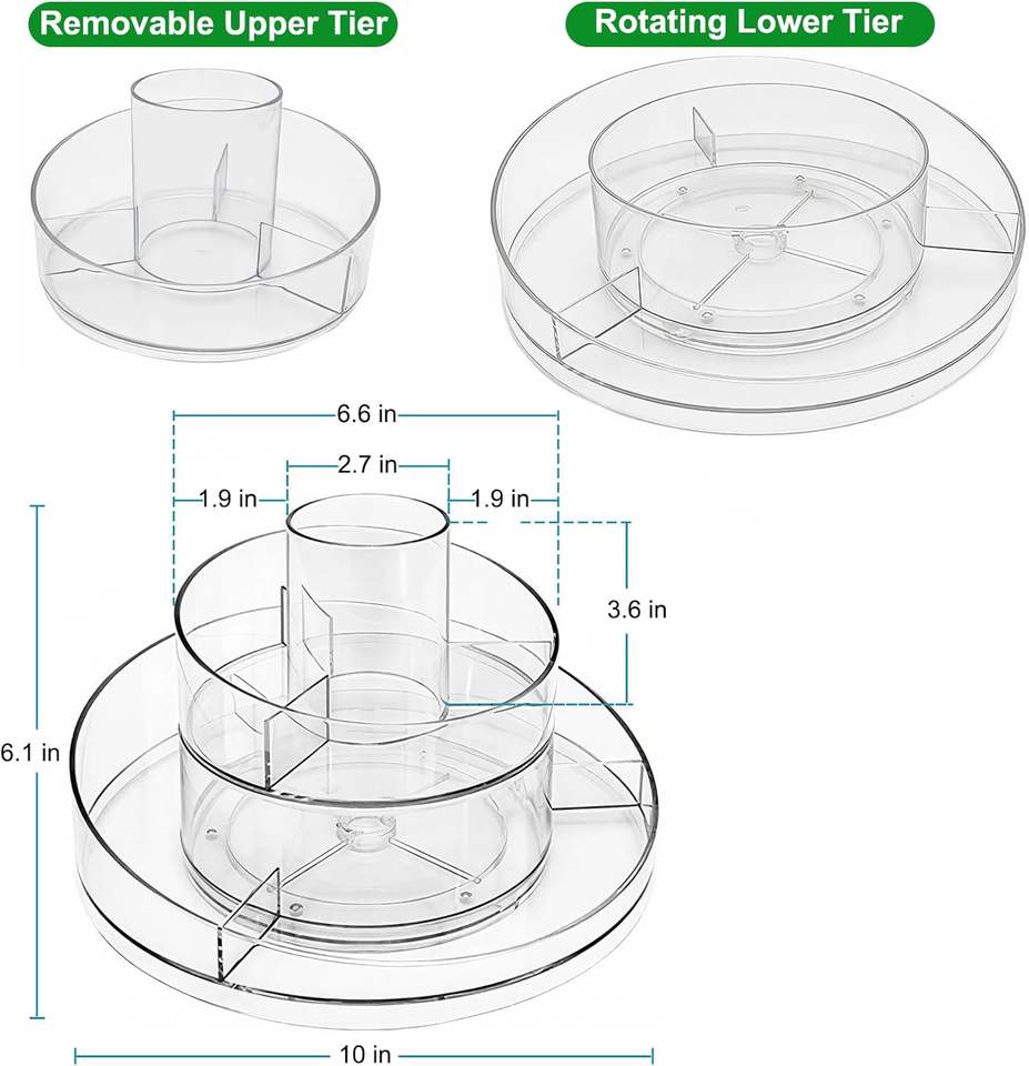 ที่จัดเก็บเครื่องสำอางอะคริลิกหมุนได้2ชั้นถาดเก็บเครื่องสำอางหมุนได้8ช่อง360