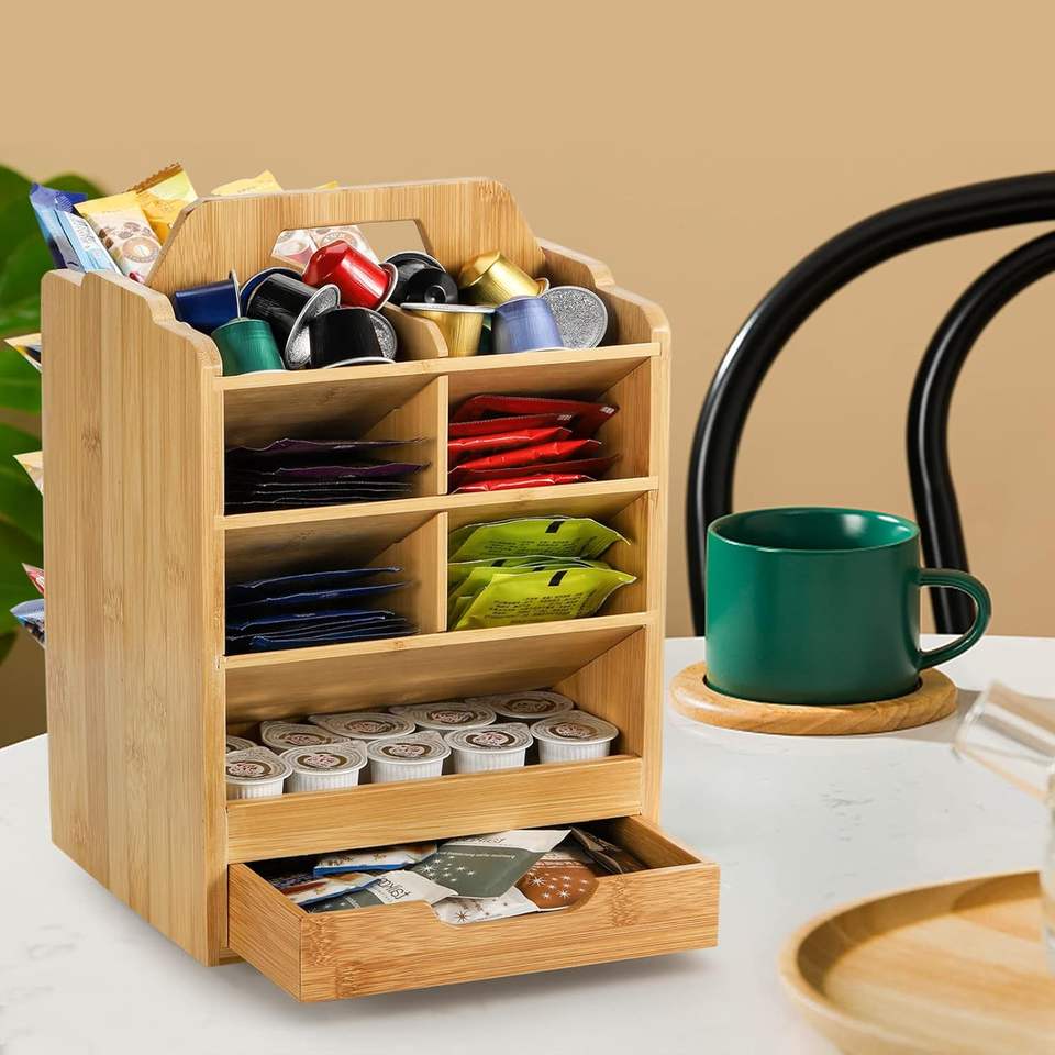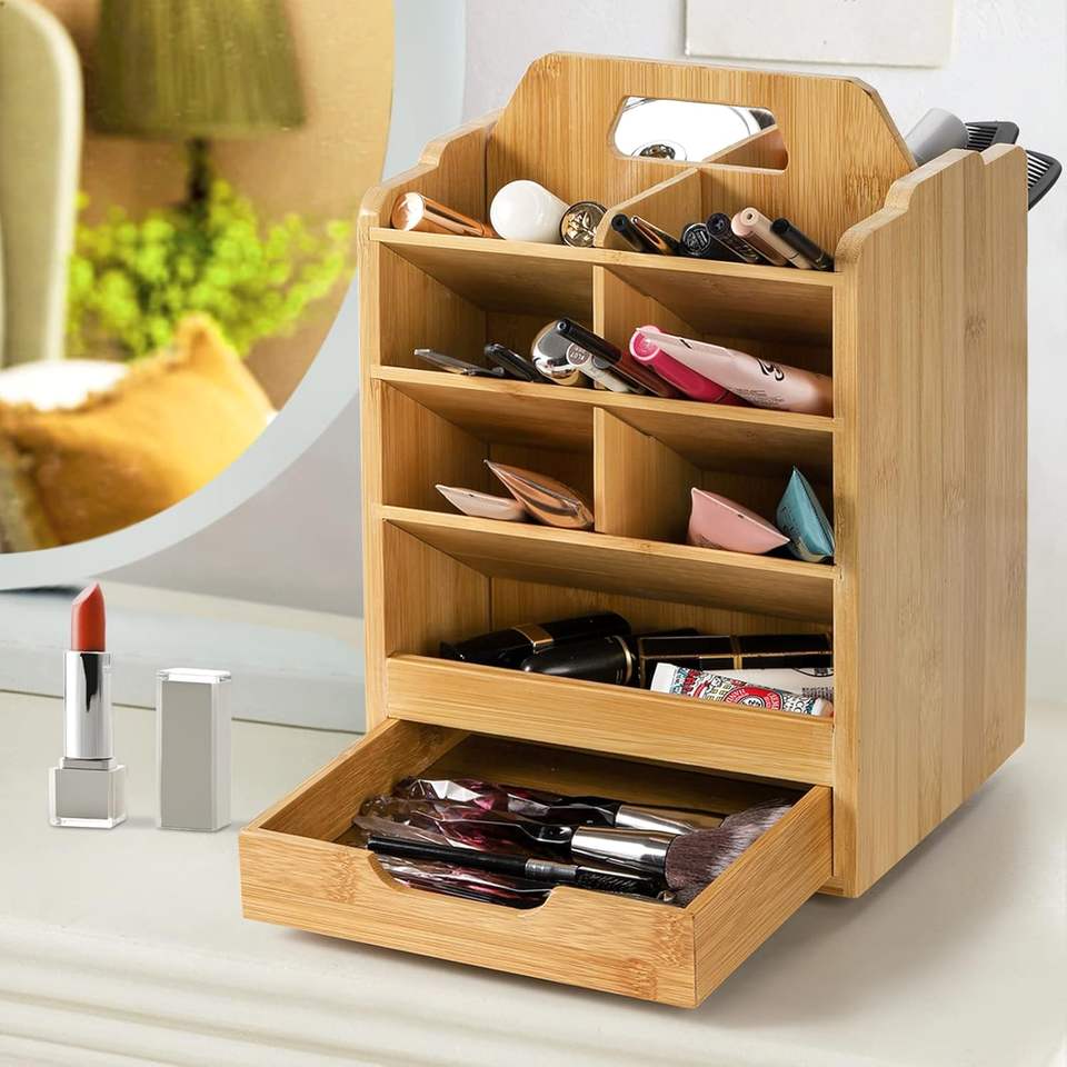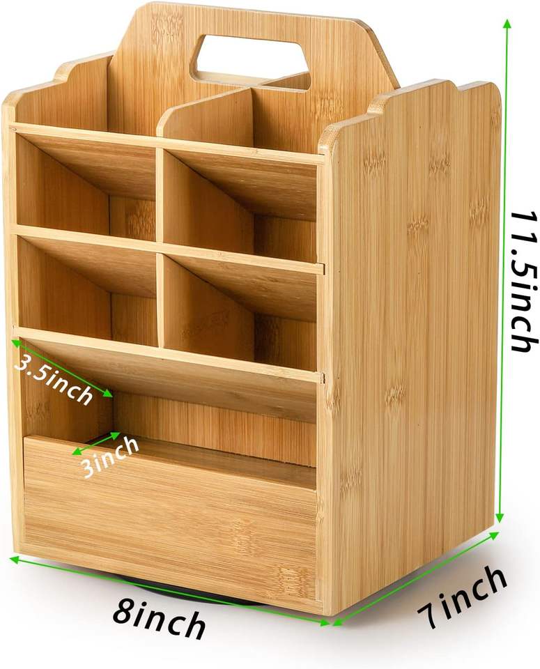 360 ° ที่วางเครื่องเขียนแบบหมุนได้ ที่วางปากกาไม้ไผ่บนโต๊ะ ชั้นวางโชว์สำนักงาน