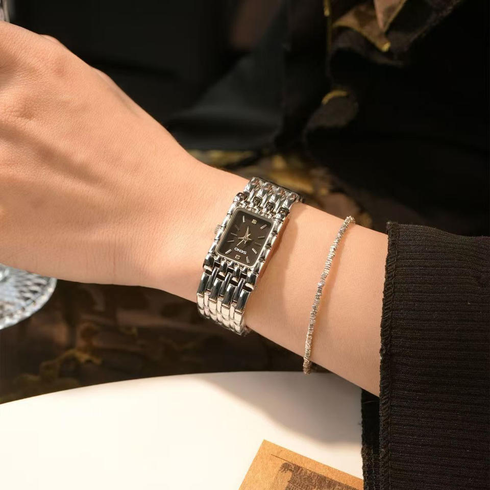 360 /seno สร้อยข้อมือสี่เหลี่ยมสไตล์วินเทจแฟชั่นทองเรียบง่ายย้อนยุคนาฬิกายาวของผู้หญิง