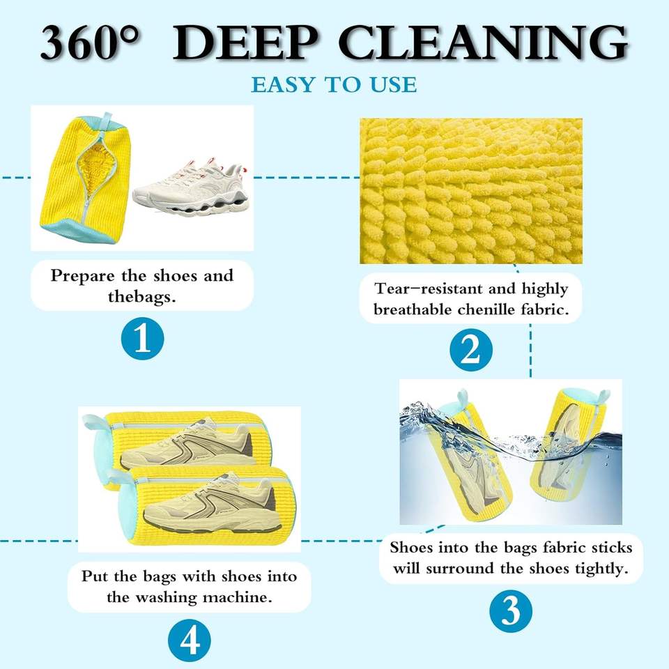 ถุงซักรองเท้าป้องกันการเสียรูปทรง 360Cleaning&Protection สำหรับเครื่องซักผ้า ผลิตจากผ้าเชนิลล์เนื้อนุ่มคุณภาพพรีเมียม ความจุขนาดใหญ่ สำหรับห้องน้ำ