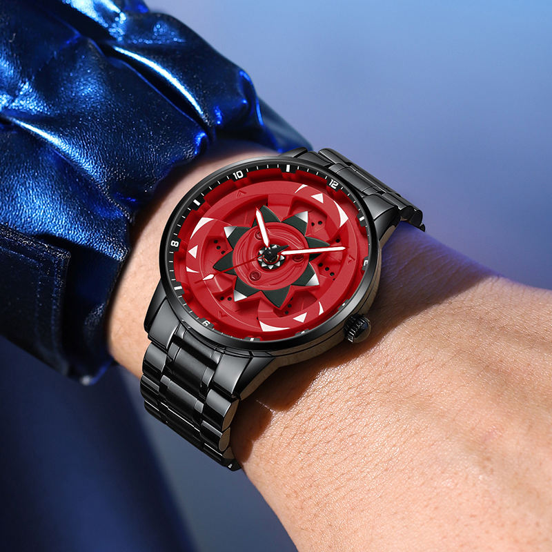 3D หมุนได้360สำหรับผู้ชายนาฬิกาควอทซ์ดุมล้อรถยนต์สำหรับผู้ชายนาฬิกาสเตนเลสสตีลกันน้ำขายส่ง