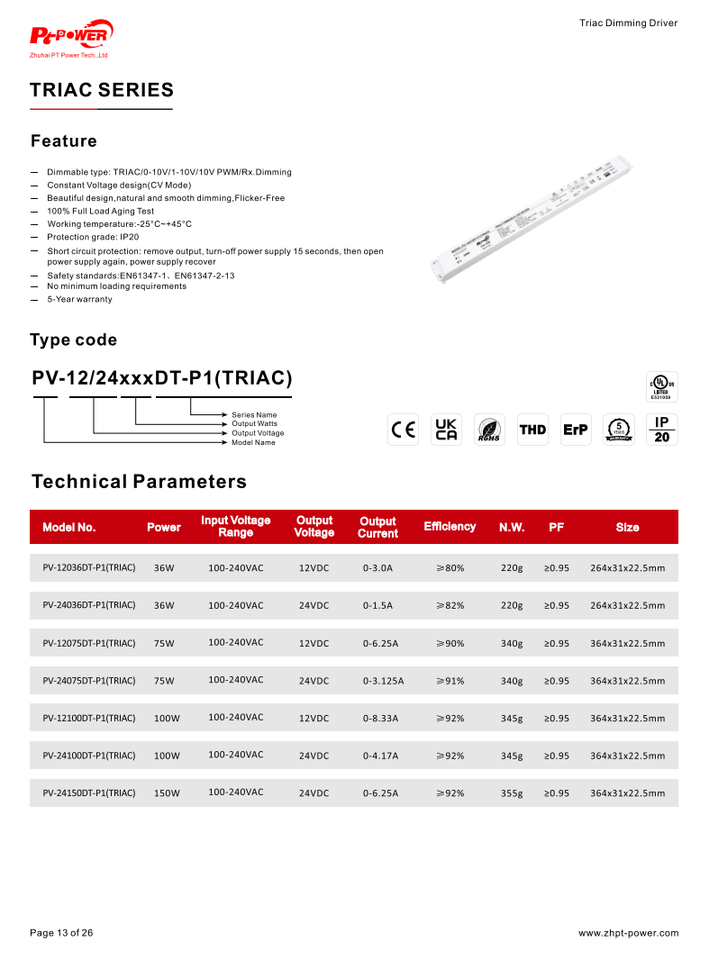 Dimming Mode:Triac/0-10V/1-10V/10V PWM/Rx. Dimming