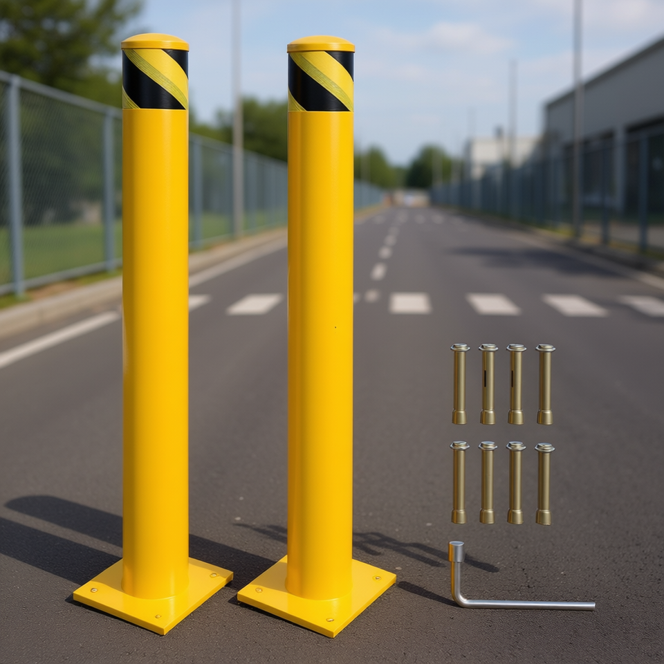 เสากั้นจราจรเหล็กเคลือบผงสีเหลืองขนาด 36 นิ้ว สำหรับพื้นที่จราจรหนาแน่น