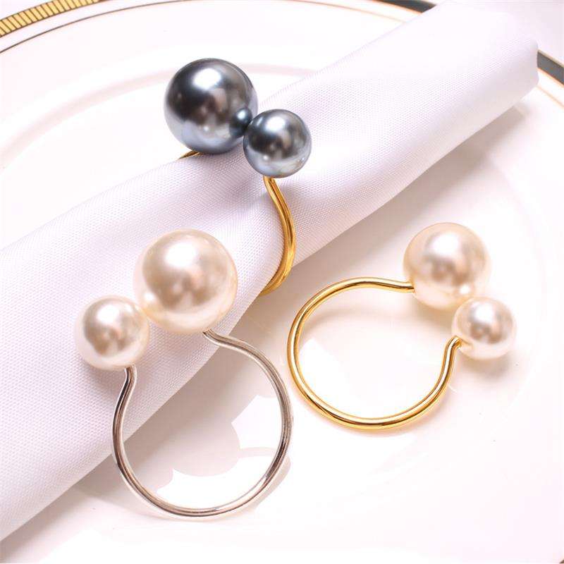 374 Elegent Pearl Napkin Rings Metal Napkin Ring for Wedding Party Home Decoration