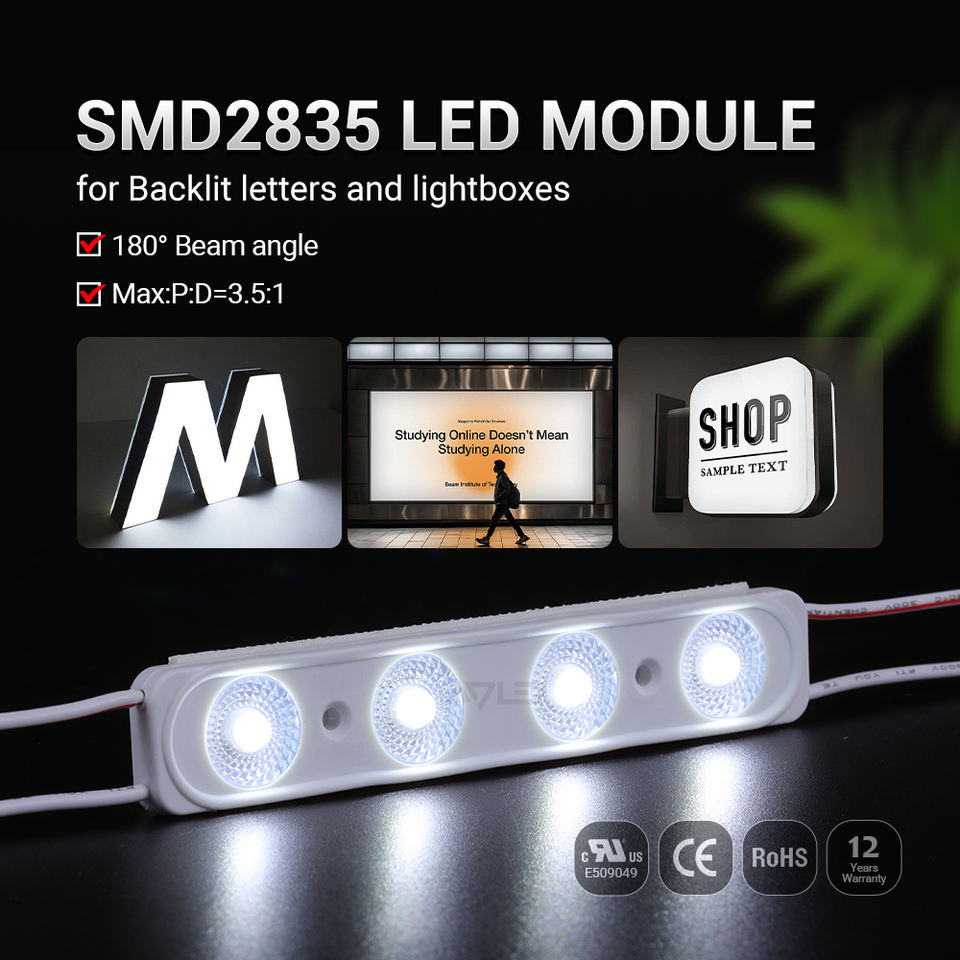 375LM 4LED SMD โมดูล LED 2835เลนส์ IP67 12V 3W 175องศา6500K CRI80รับประกัน12ปีป้ายโฆษณาสำหรับใช้งานกลางแจ้ง
