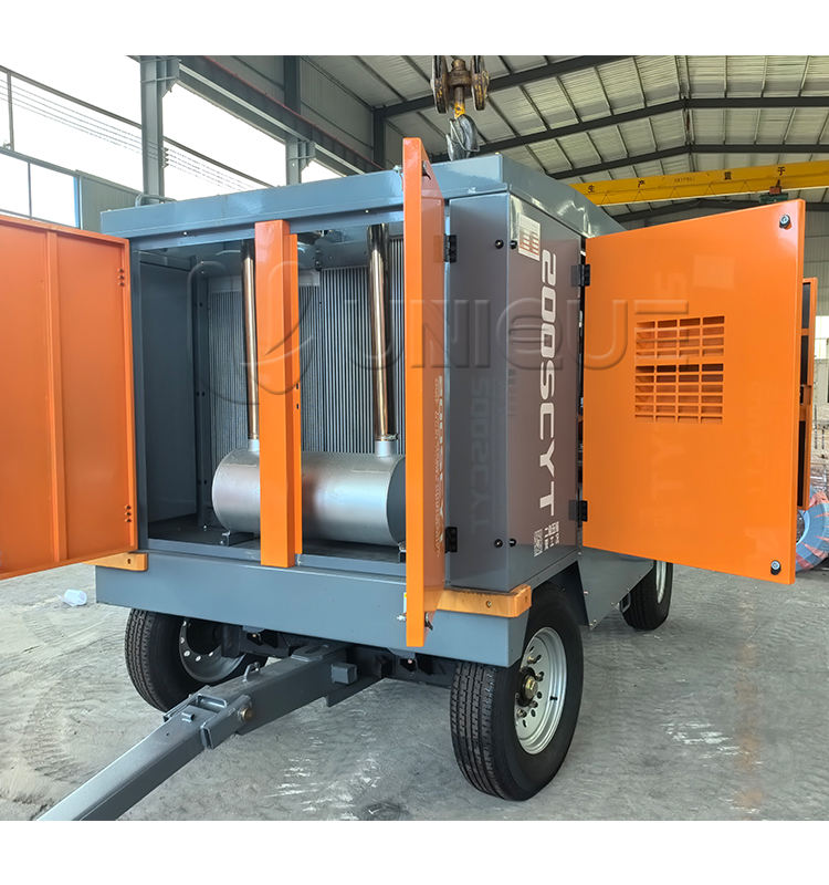 37kW คอมเพรสเซอร์แอร์ดีเซล8บาร์พร้อมมอเตอร์หล่อลื่นแบบพกพา185 CFM 380V ส่วนประกอบหลักของเครื่องยนต์ค้อนระบายความร้อนด้วยอากาศด้านหลัง